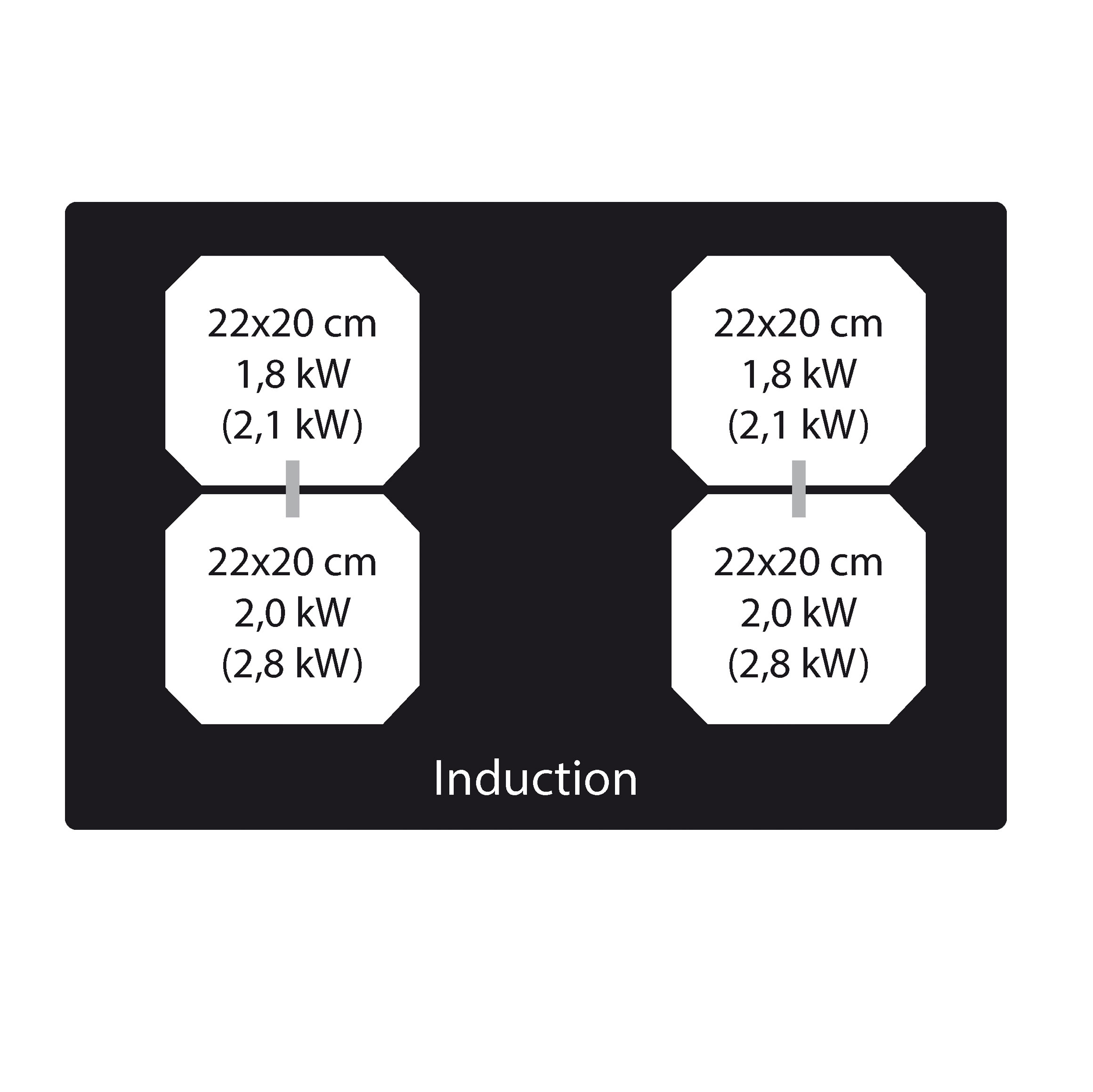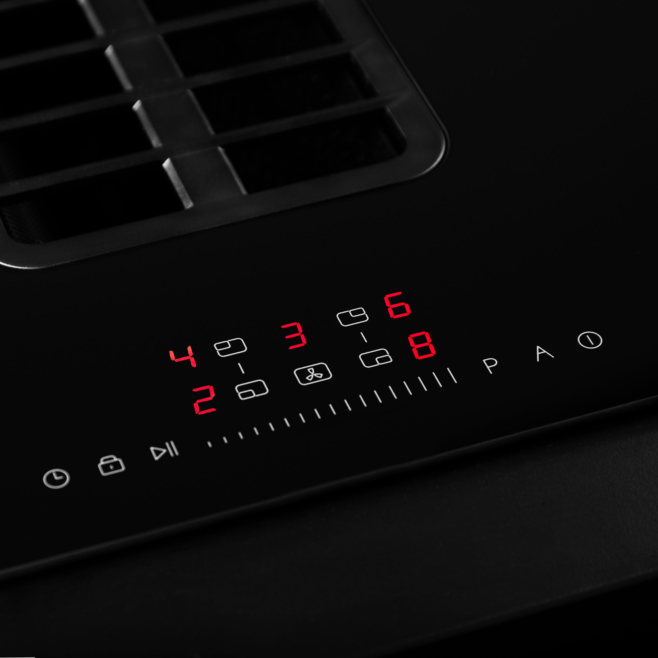 Autoaspiration sensorteknologi Den intelligenta styrningen justerar sugstyrkan, beroende på hur många av hällens zoner som är igång och på vilken nivå de är inställda på