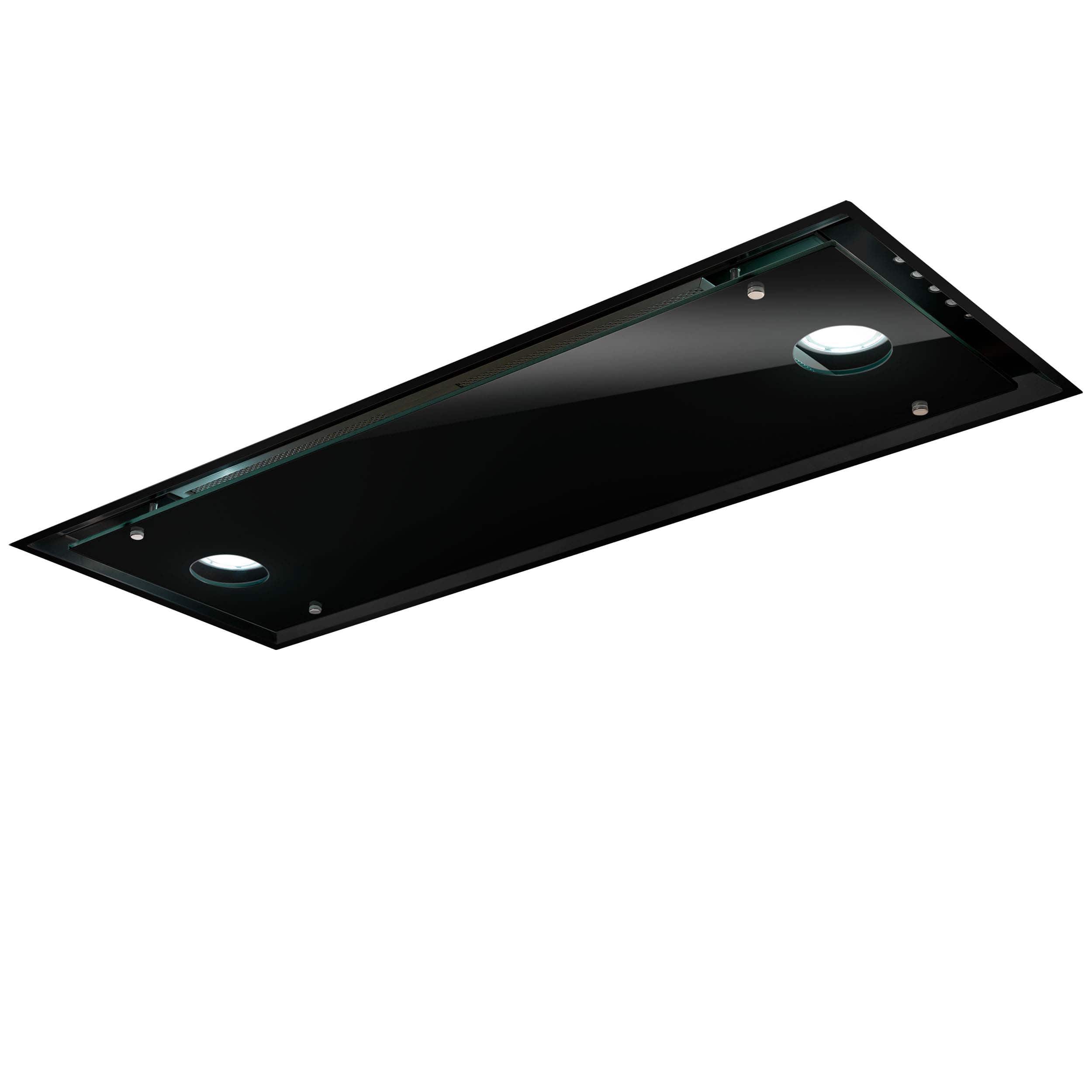 Integrerad köksfläkt i svart glas för inbyggnad i överskåp – med inbyggd motor