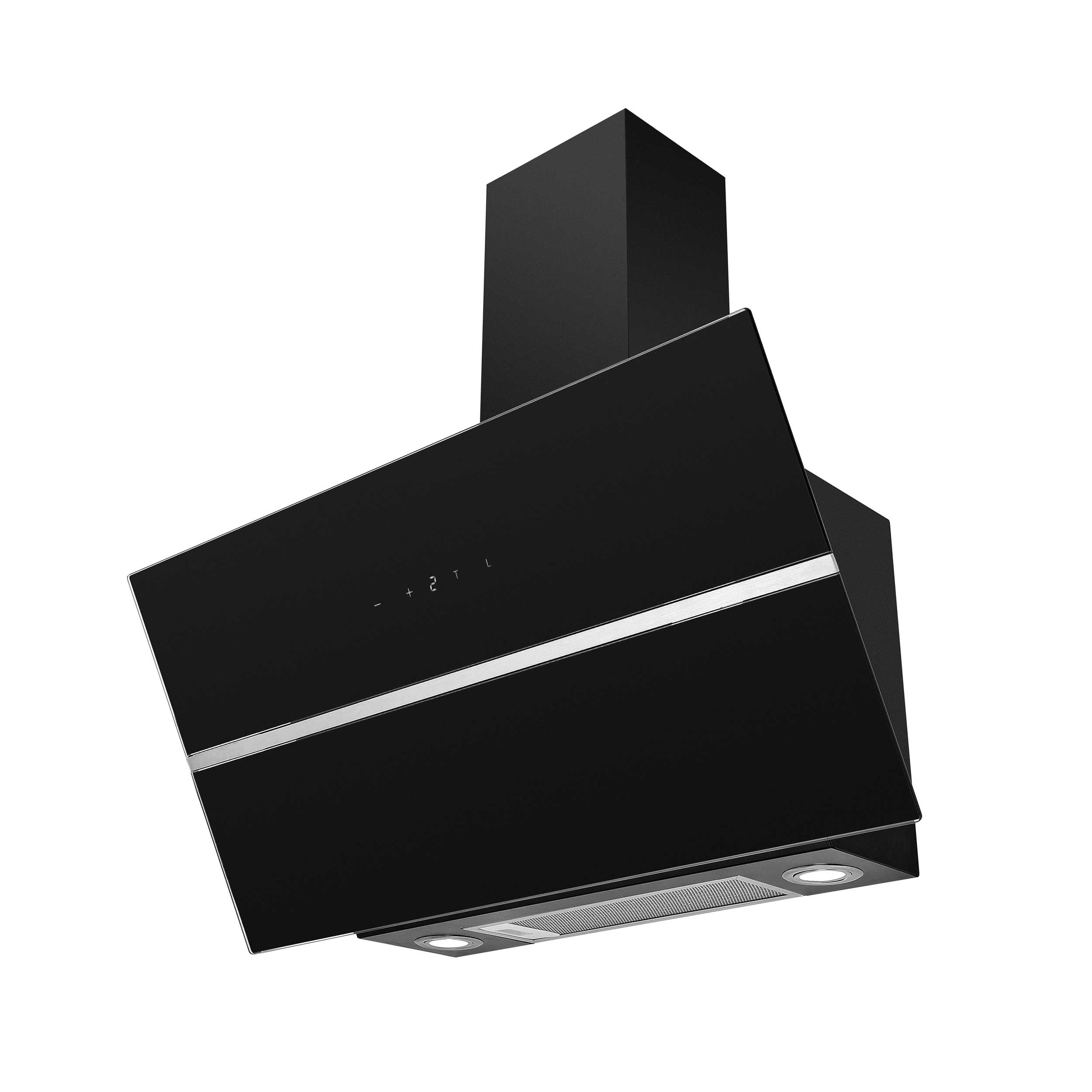 Väggmonterad köksfläkt, vertikal. Med extern motor för inv. montering - Svart/svart glas/rostfritt stållist - 800mm