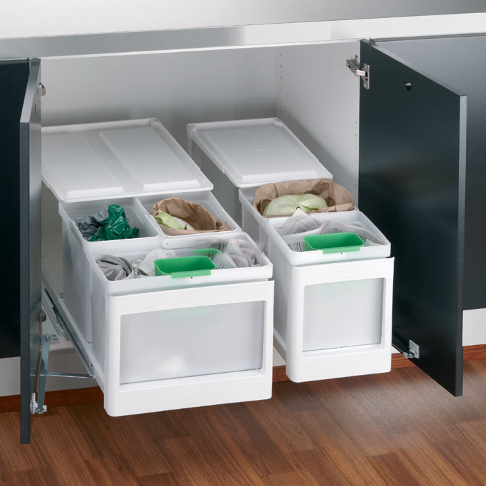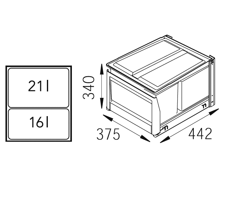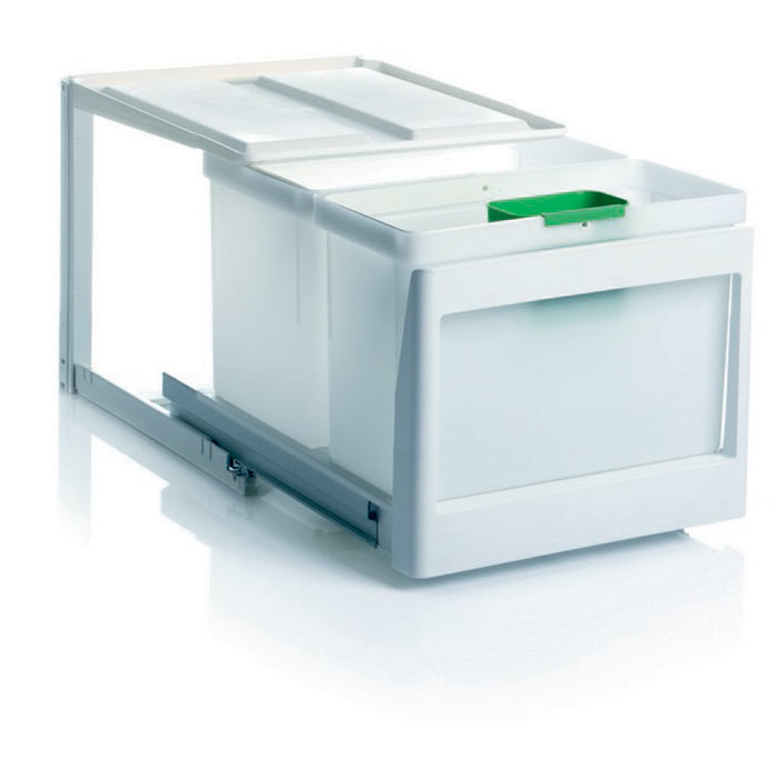 Eico 2SK är ett rymligt källsorteringssystem för 50 cm skåp. Kombinationen av 16- och 21-litershinkar ger flexibilitet i den dagliga sorteringen. Robust kvalitet och möjlighet till dörrmekanism.