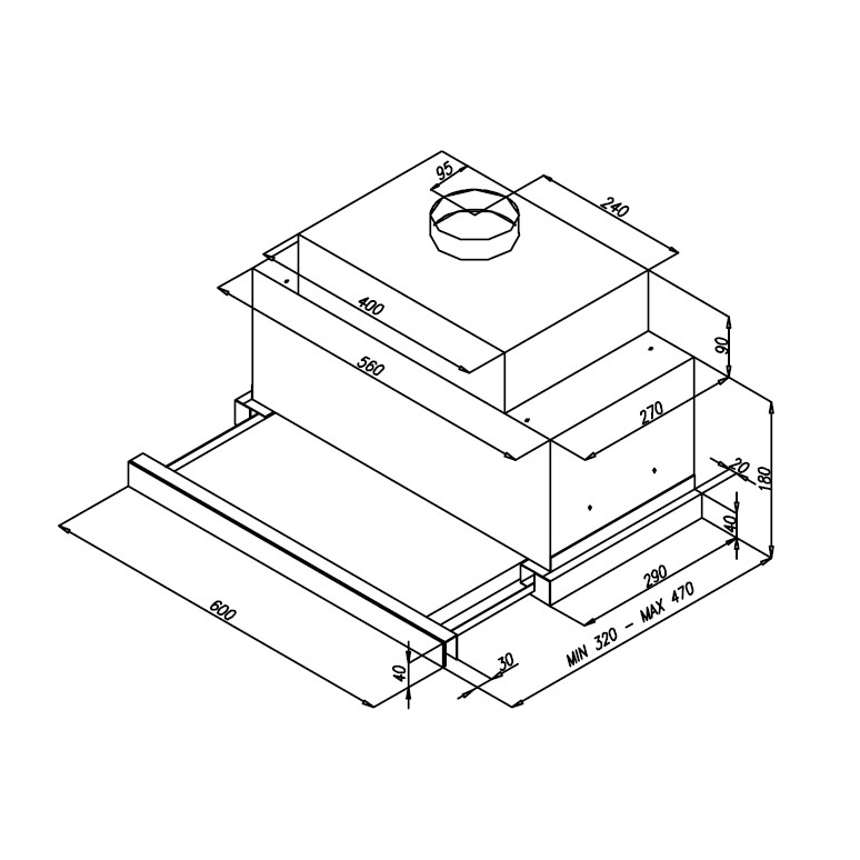 • Produkt (BxDxH) 600 x 320 - 470 x 230 mm