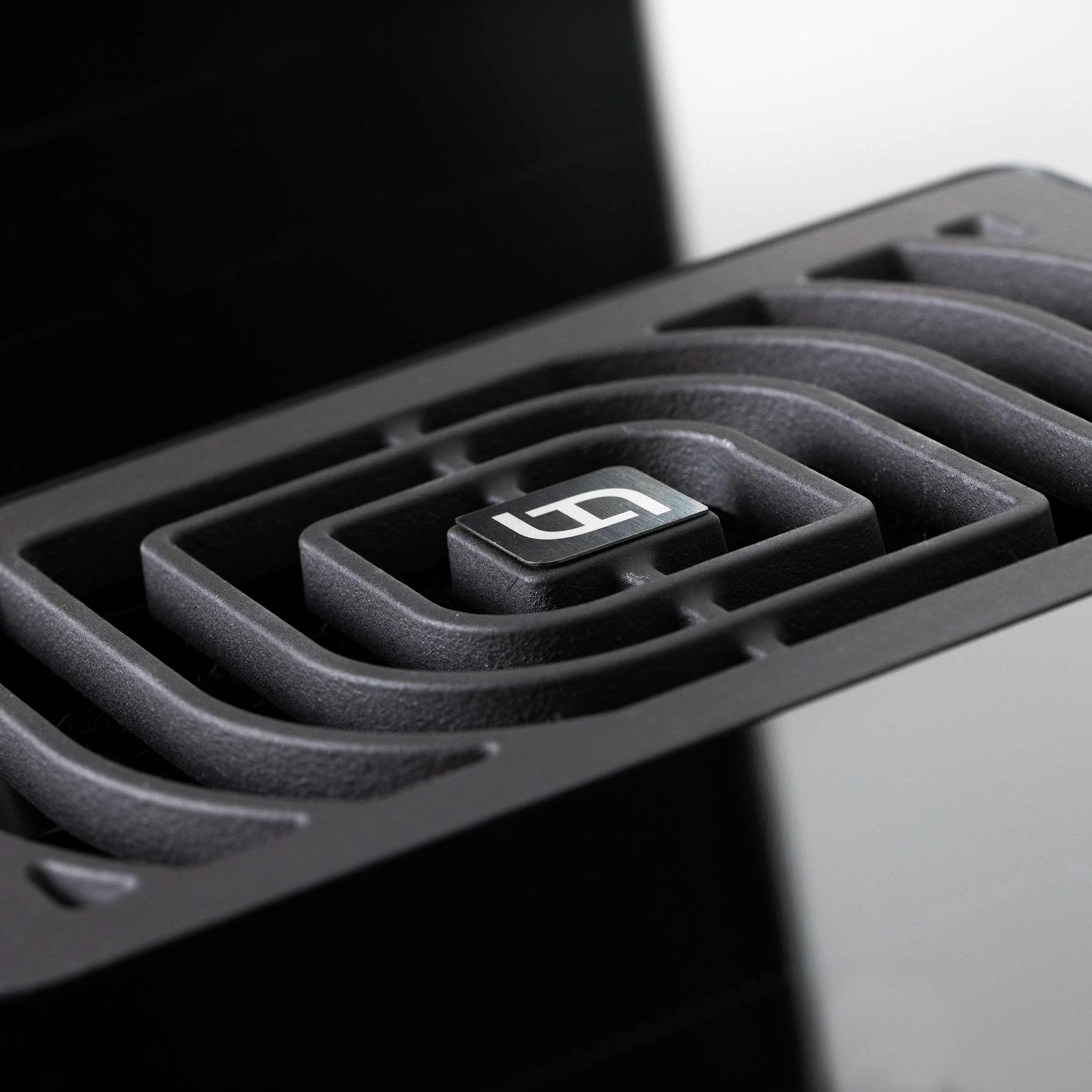 Spishäll med inbyggd fläkt. Med inbyggd motor - Rak kant, svart glas - 830mm - A++