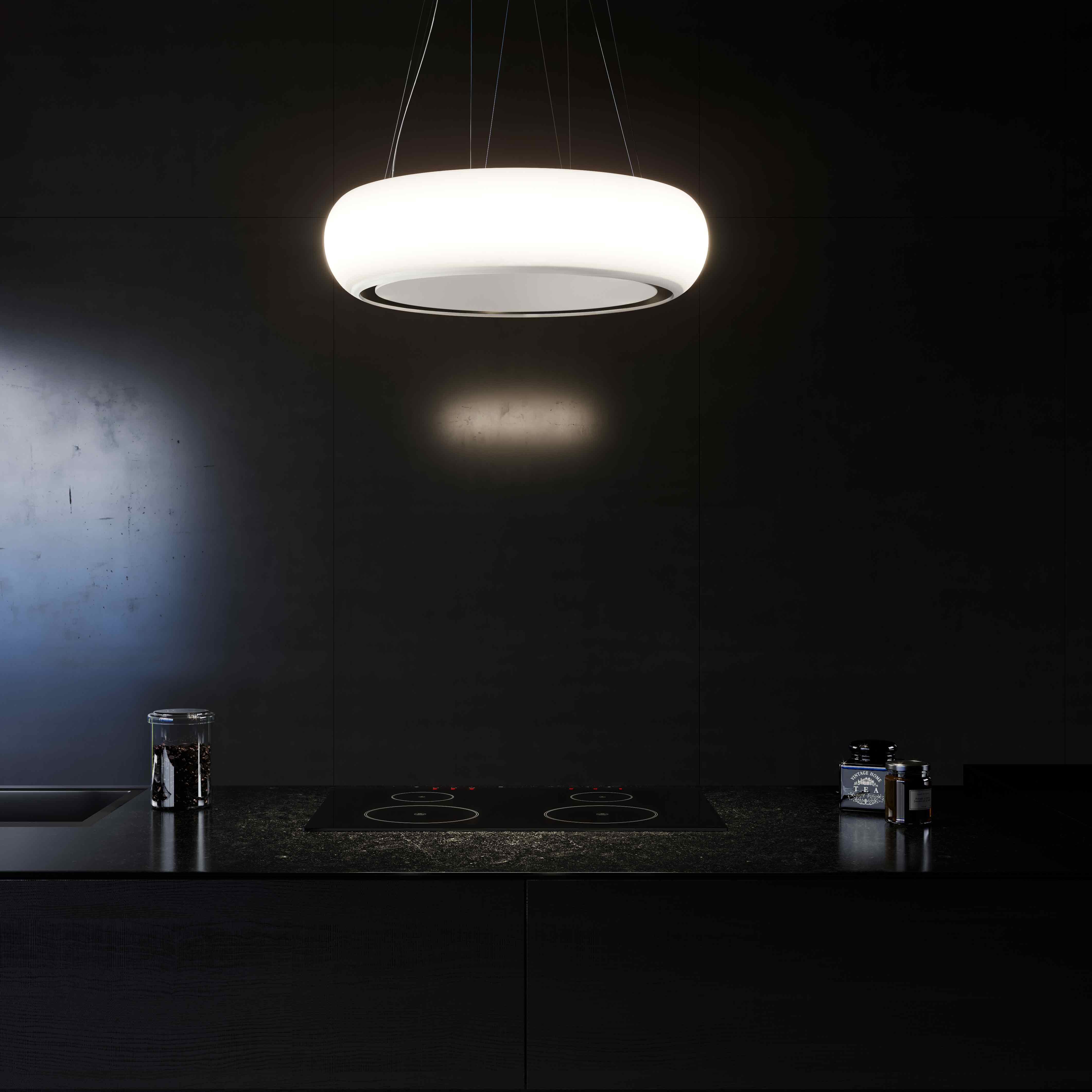 Modell för kolfilter Med recirkulationsvarianten behövs inga rör som leder bort utanför köket. Istället renas luften vid genomströmning i aktiva kolfilter och förs sedan tillbaka ut i köket.