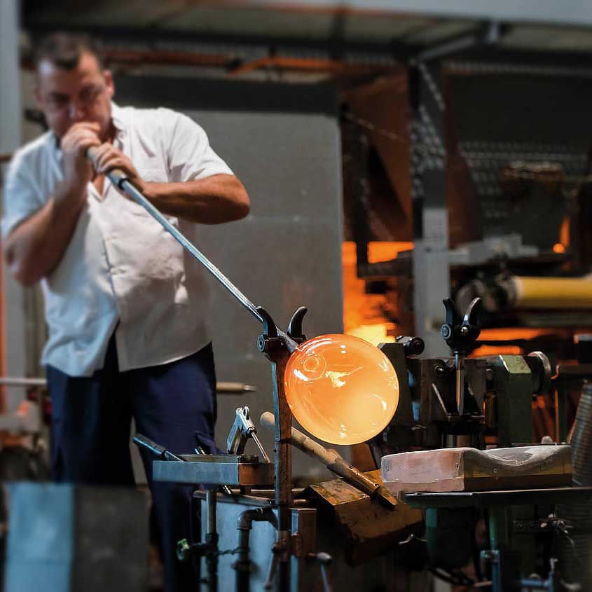 Dekorativ vajerhängd köksfläkt i munblåst glas