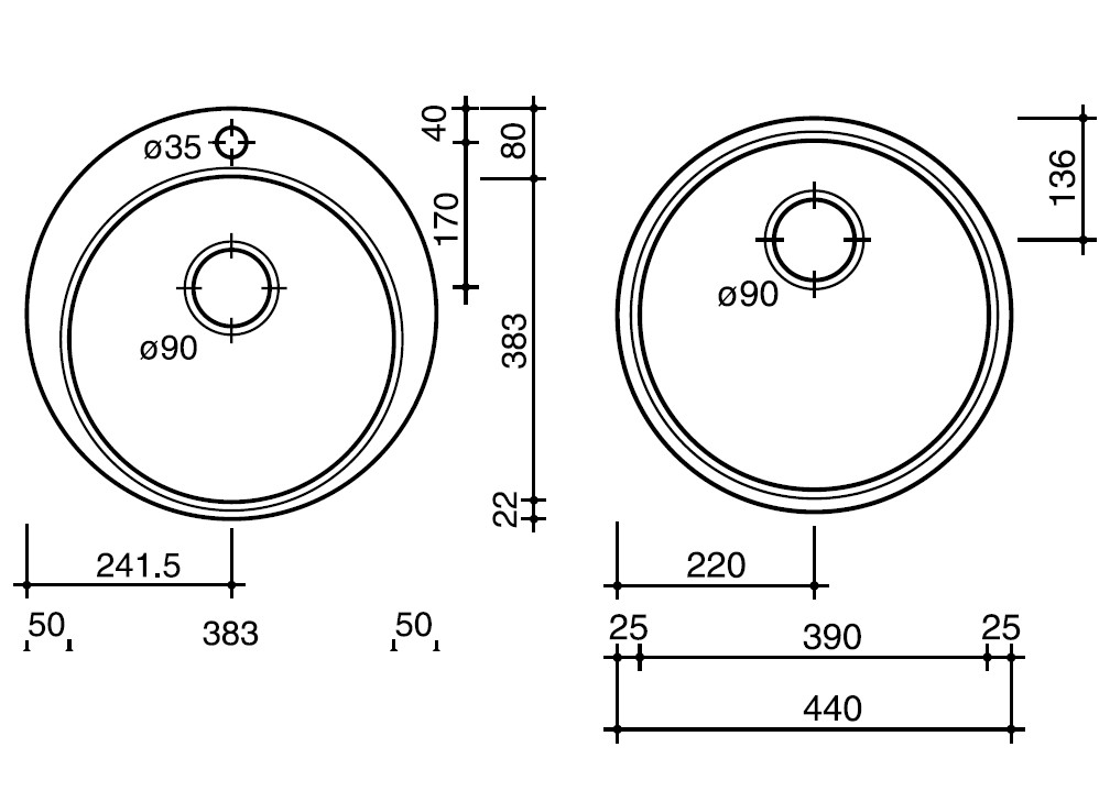 Diskho i stål, Enkel diskho utan bakre kant, För under- eller planlimning - Rostfritt stål