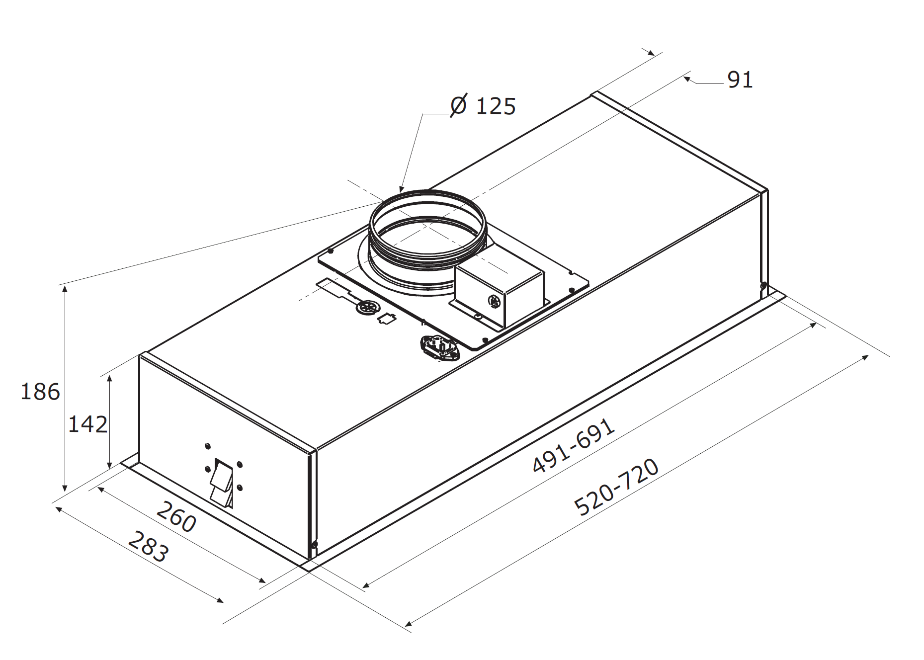 Köksfläkt för centralventilation med timer och elektronisk styrning – 600 mm
