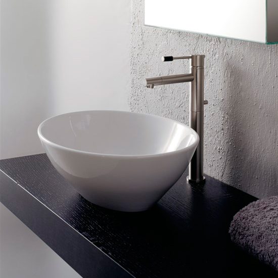 Tvättställ i porslin. För montering på skiva. Utan breddavlopp. Enkelt tvättställ. NB: Tag kontakt for att få ritning för utskärning. Då materialet är porslin kan måtten variera. Därför rekommenderas det alltid, att produkten är fysiskt närvarande.