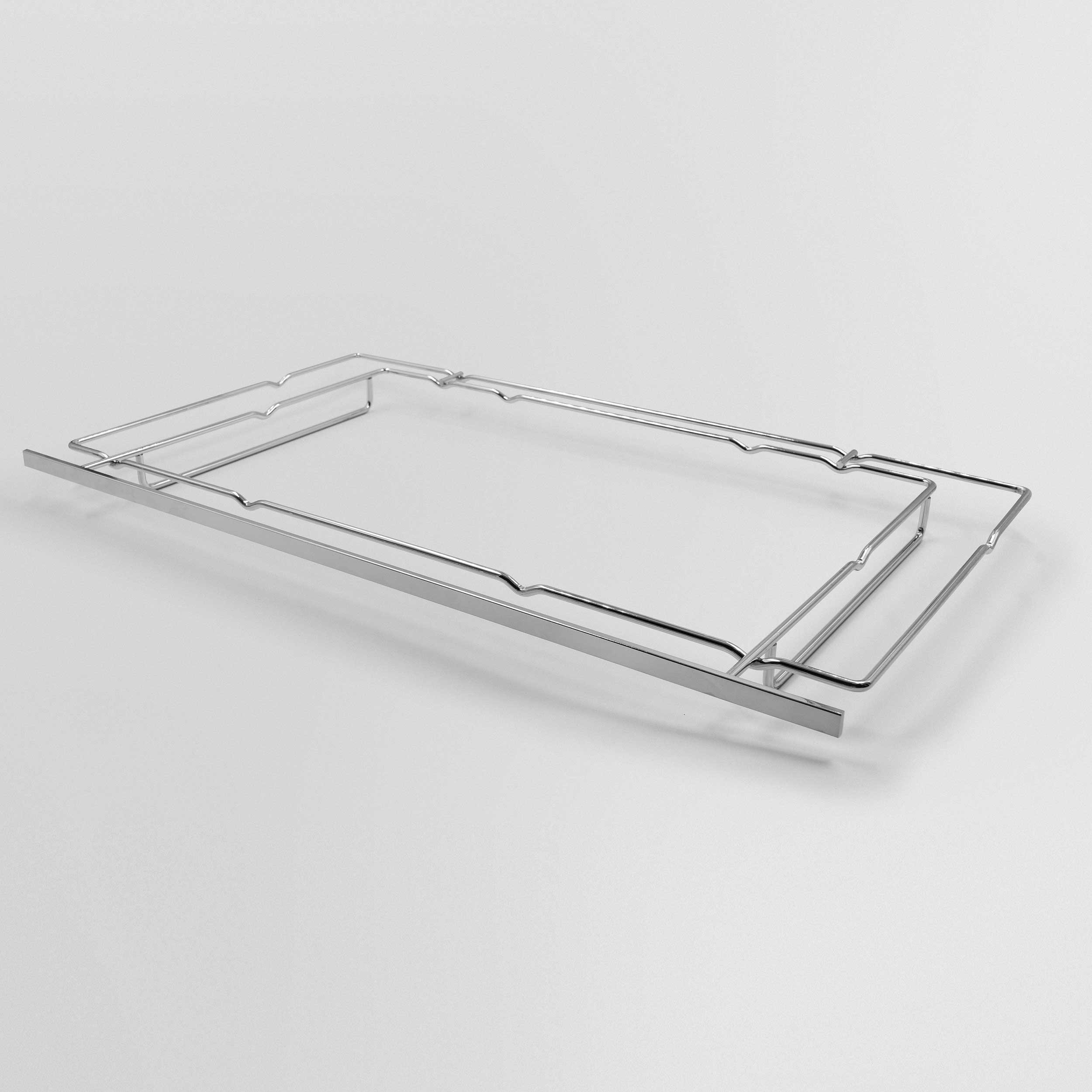 Plåtstöd i stål för Lhov, designad för att hålla airfryer-korgar, perforerade stålbrickor och pizzastenar. Stabil och praktisk för mångsidig matlagning.