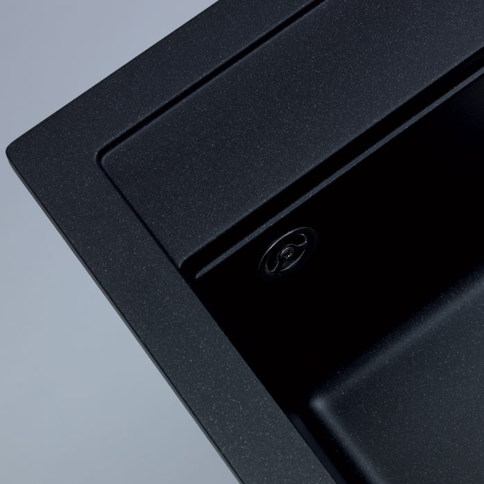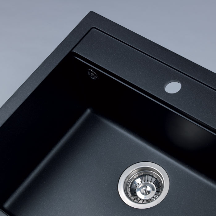 Componitvask. Enkel diskho med bakkant. För nedsänkning. Invändig hörnradie 6, Kant 35 mm. Värmefast upp till 280° C. Färgen förändras ej i direkt solljus. Levereras med hål för blandare