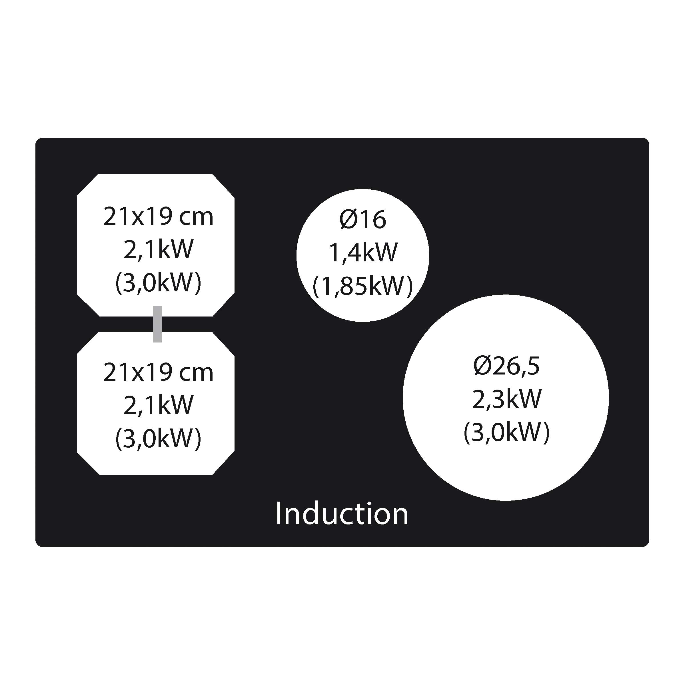 Induktionshäll - 4 zoner - Svart - Bredd 780 mm