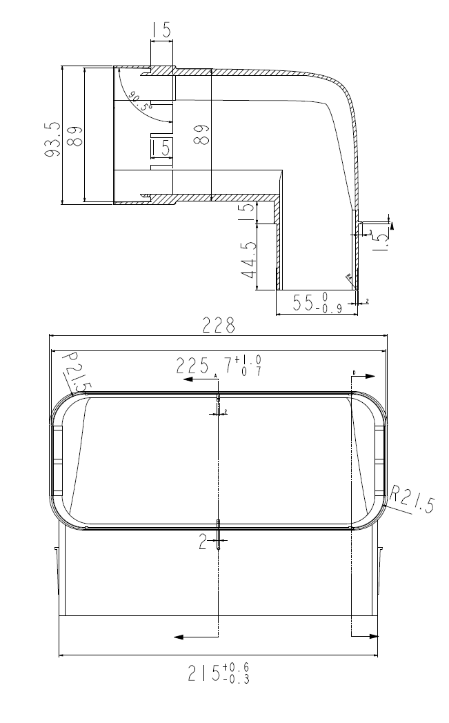 Reduktionsböjning 90x220 - 55x218 - Ritning