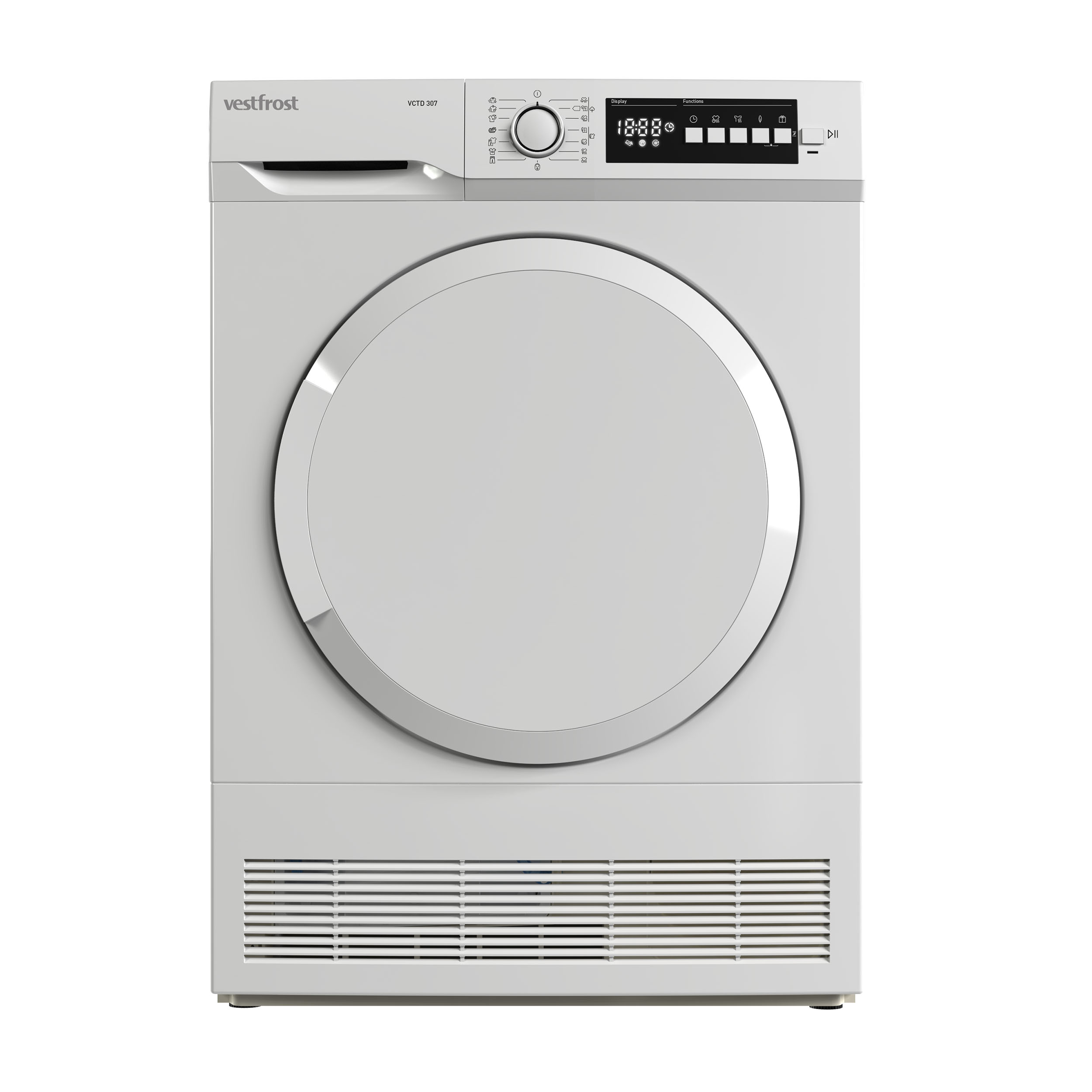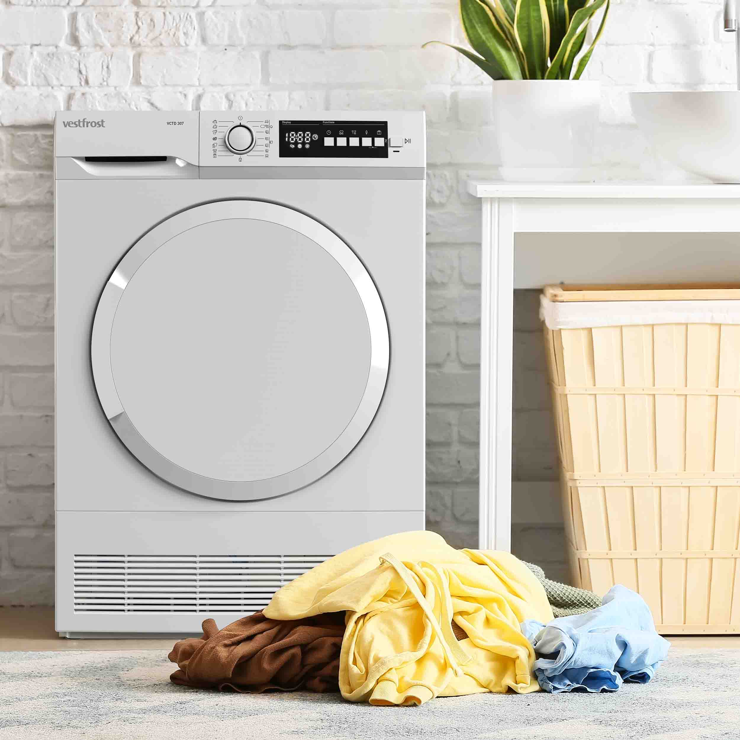 - Fristående kondenstorktumlare. Belysning i trumman. 15 program. Skontrumma. Kapacitet: 7 kg