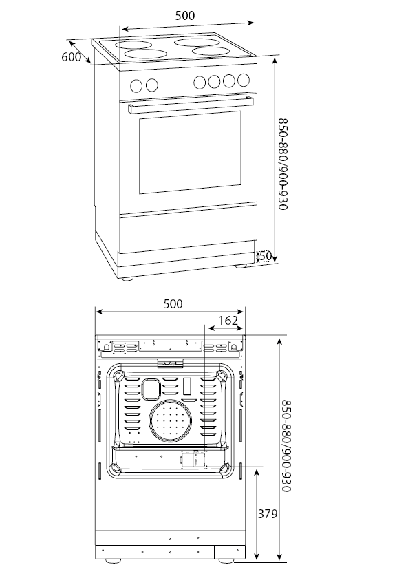 Spis med gjutjärnsplattor – 50 cm – energiklass A