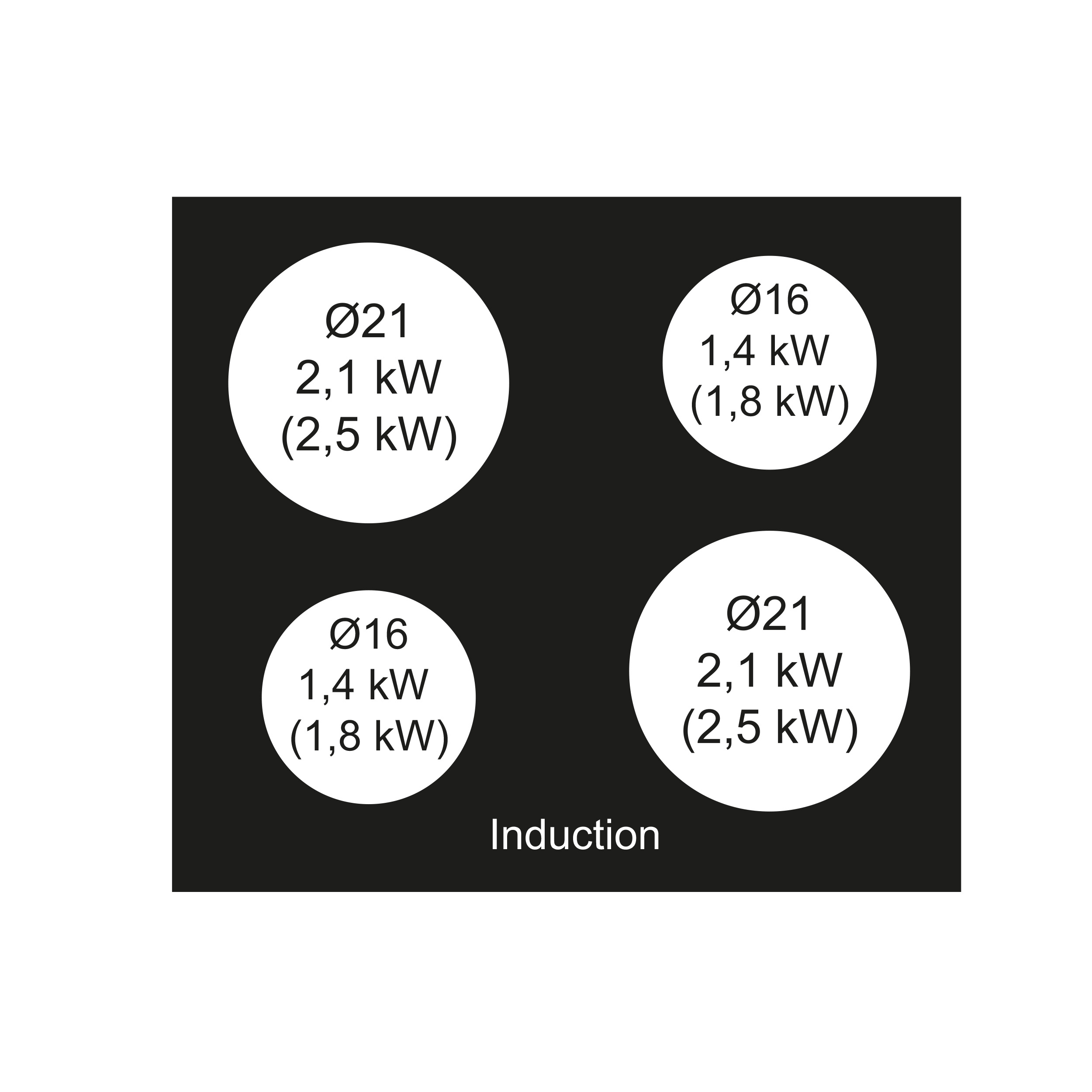 Induktionshäll. Med rak kant - Svart - 59cm