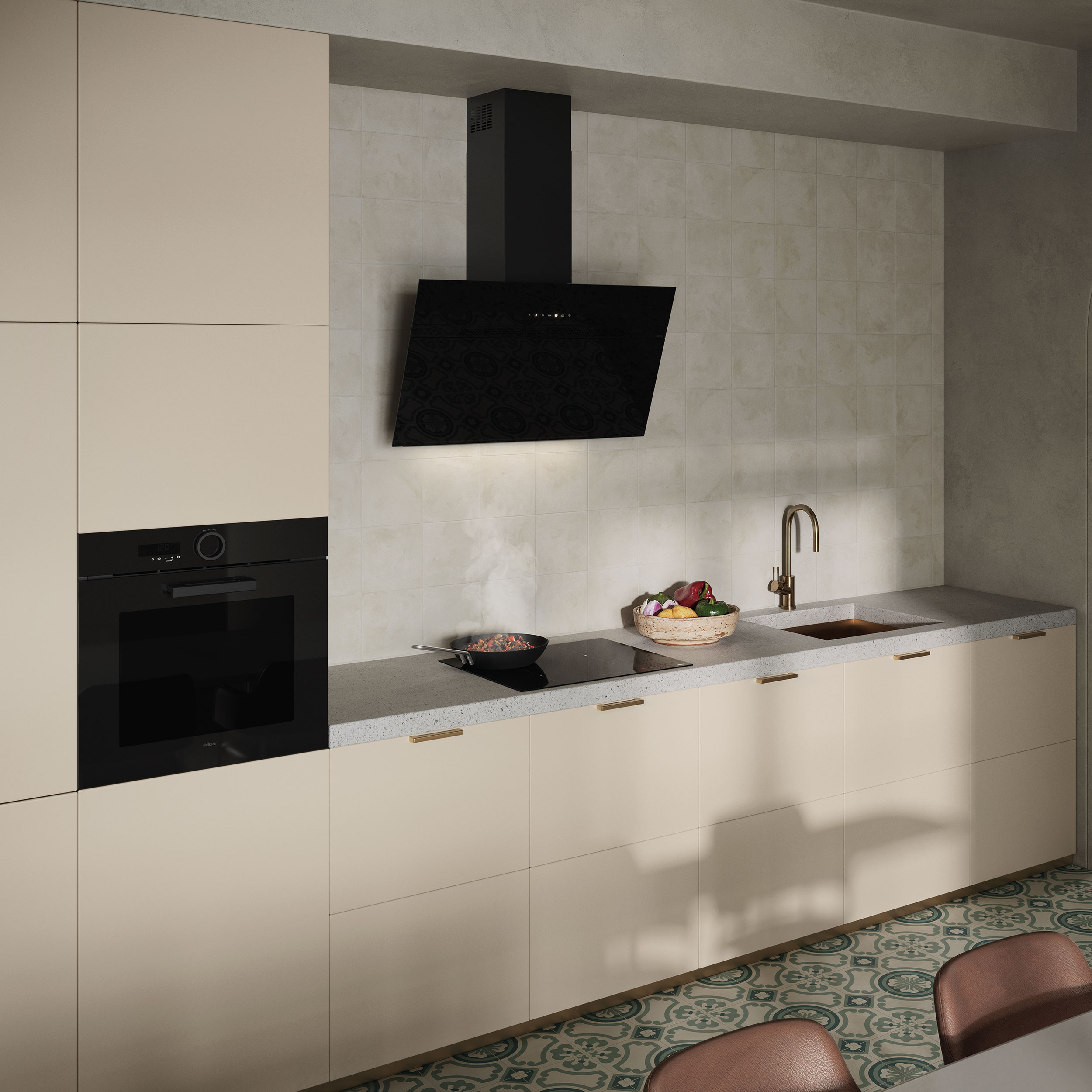 - Fullständigt svart glasdesign och minimalistisk estetik