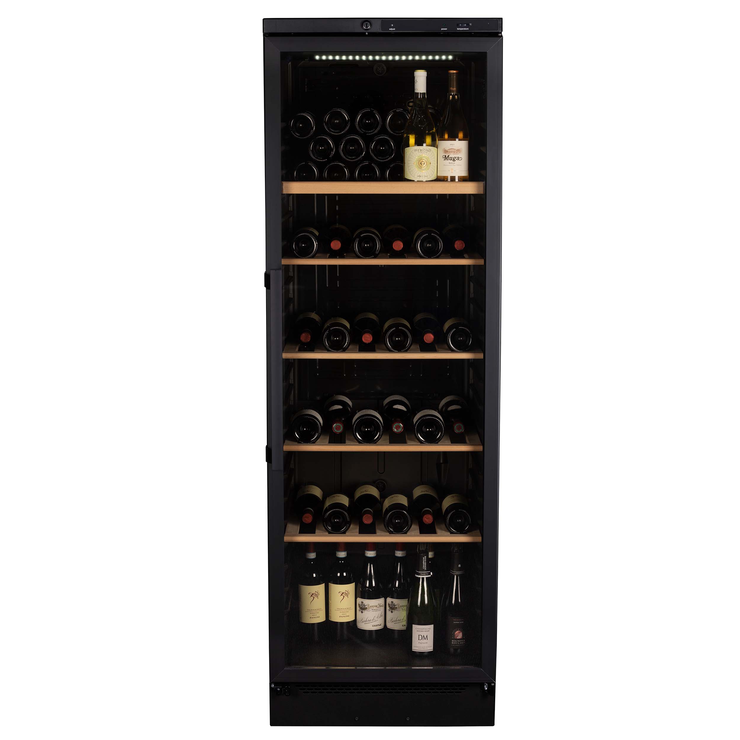 - LED-belysning överst i vinskåpet