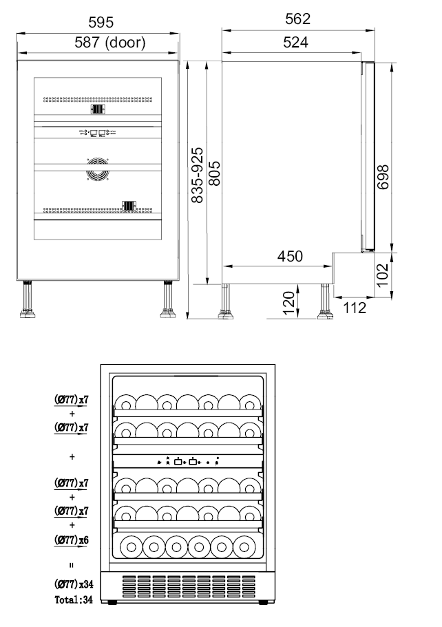 - Flaskkapacitet: Nettokapacitet för max. 34 flaskor styck