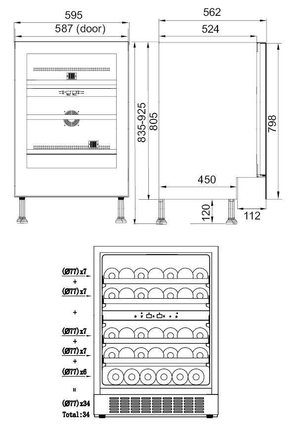 - Flaskkapacitet: Nettokapacitet för max. 34 flaskor styck
